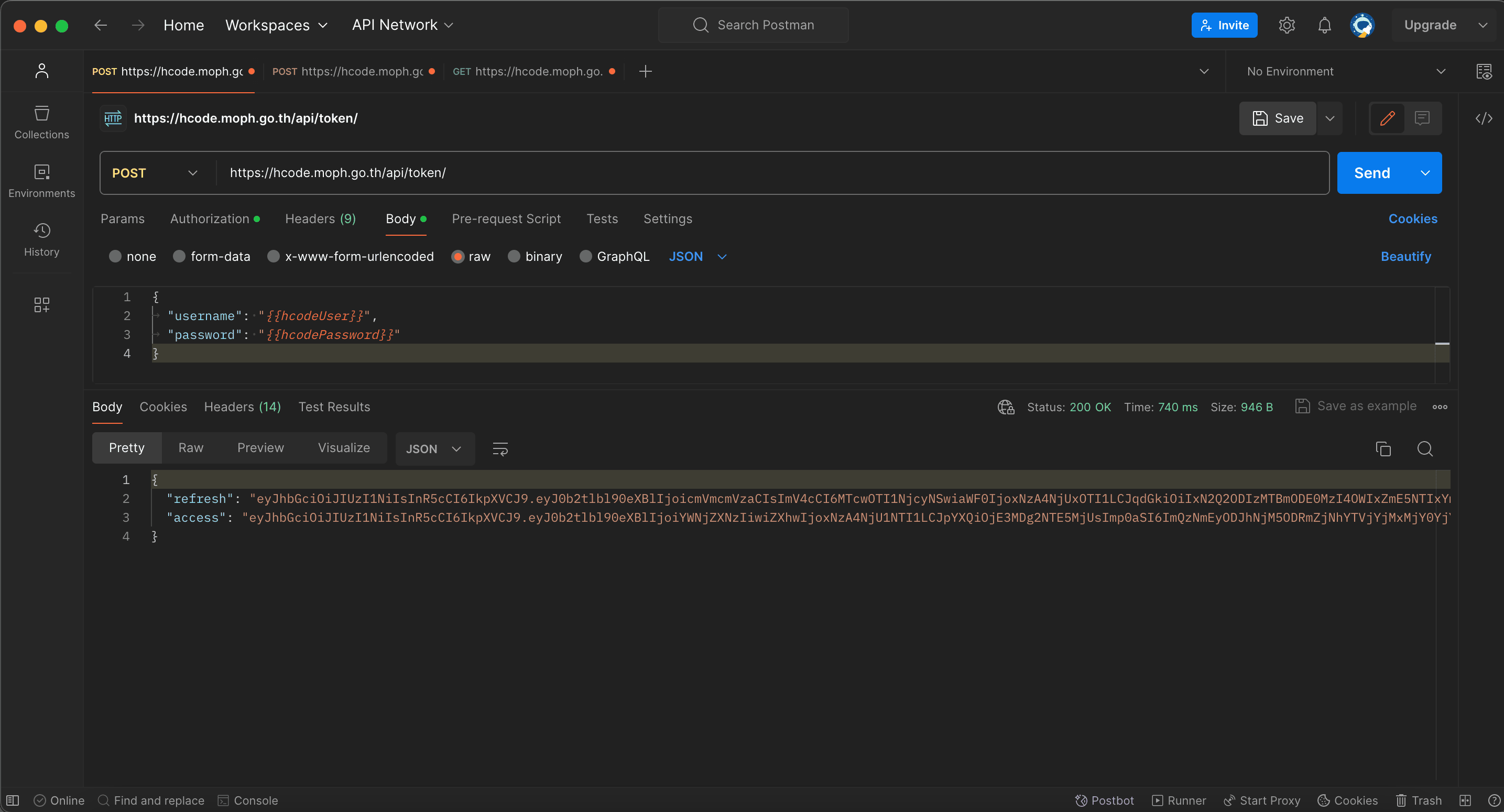 ส่งไปที่ endpoint https://hcode.moph.go.th/api/token/
